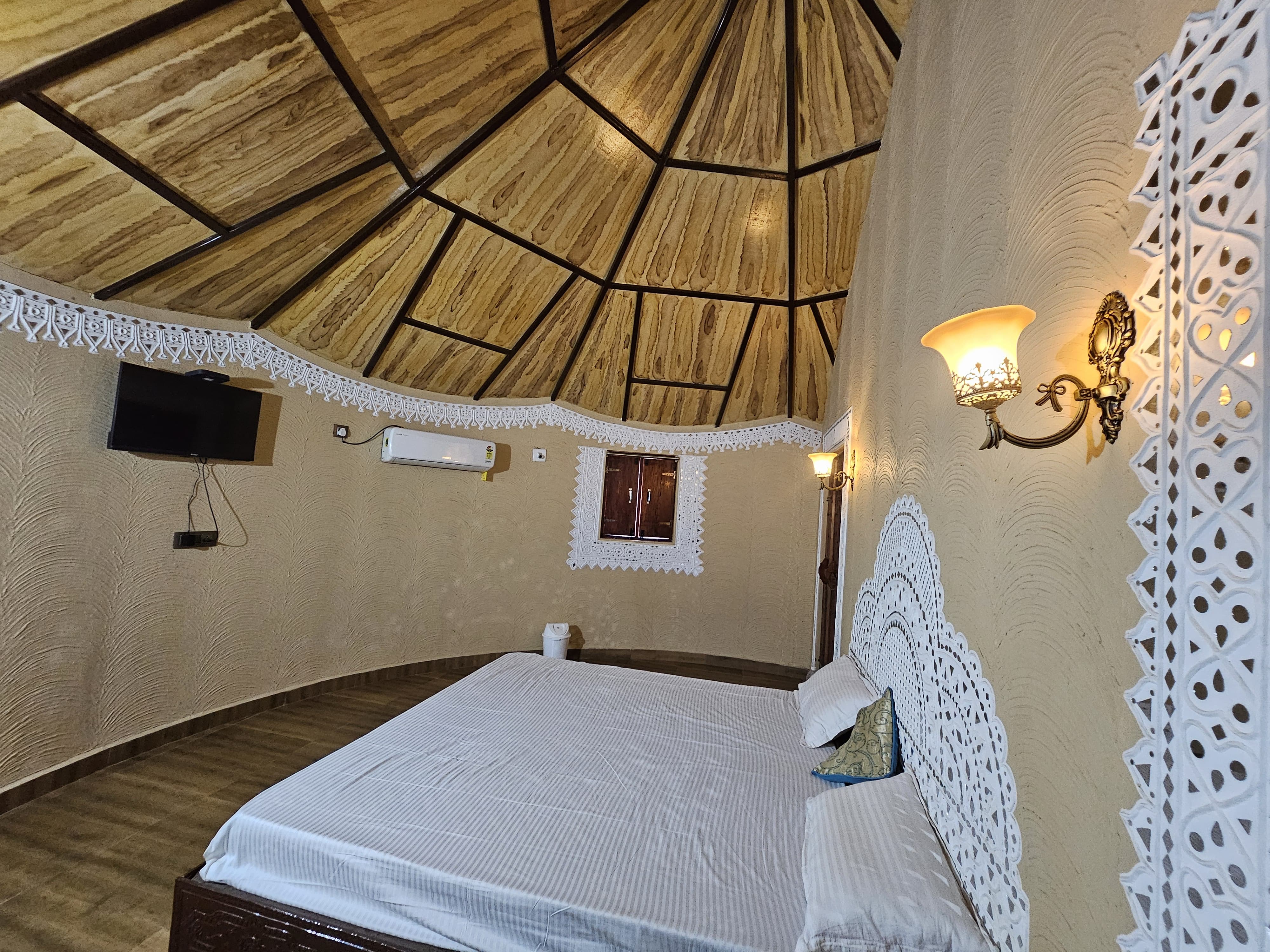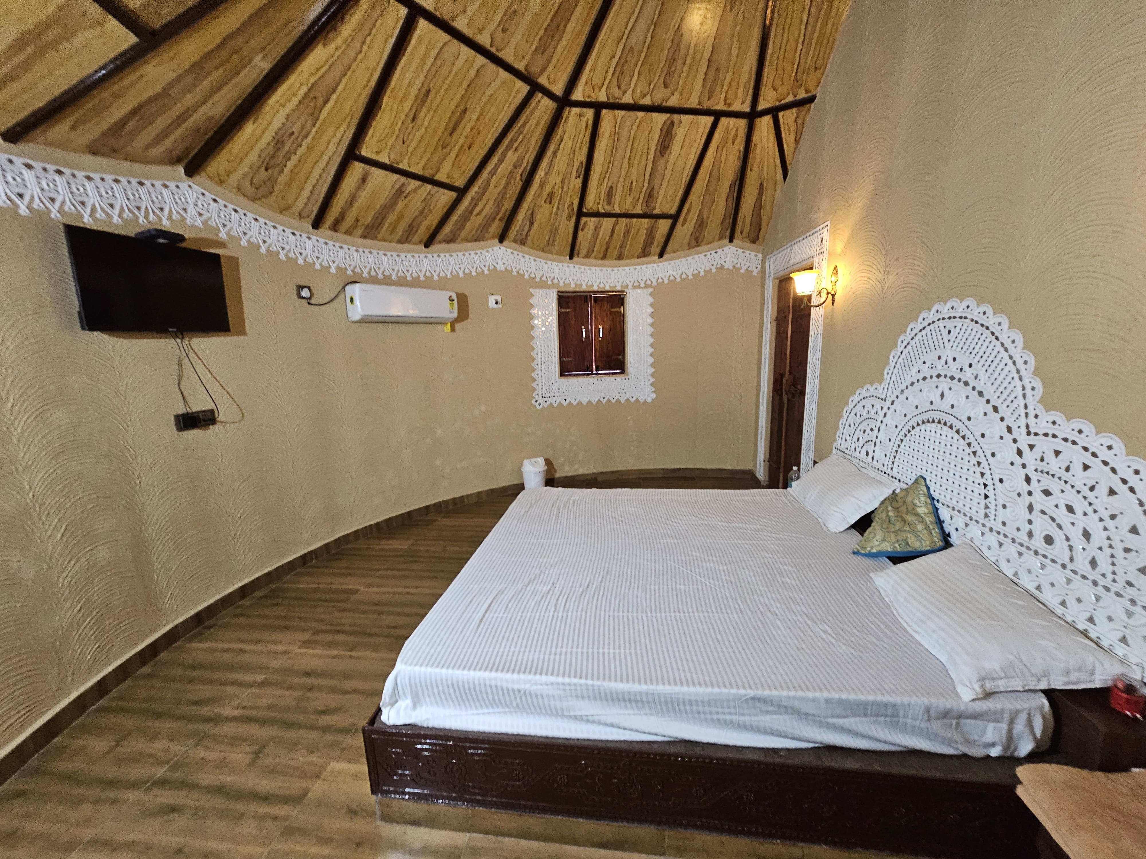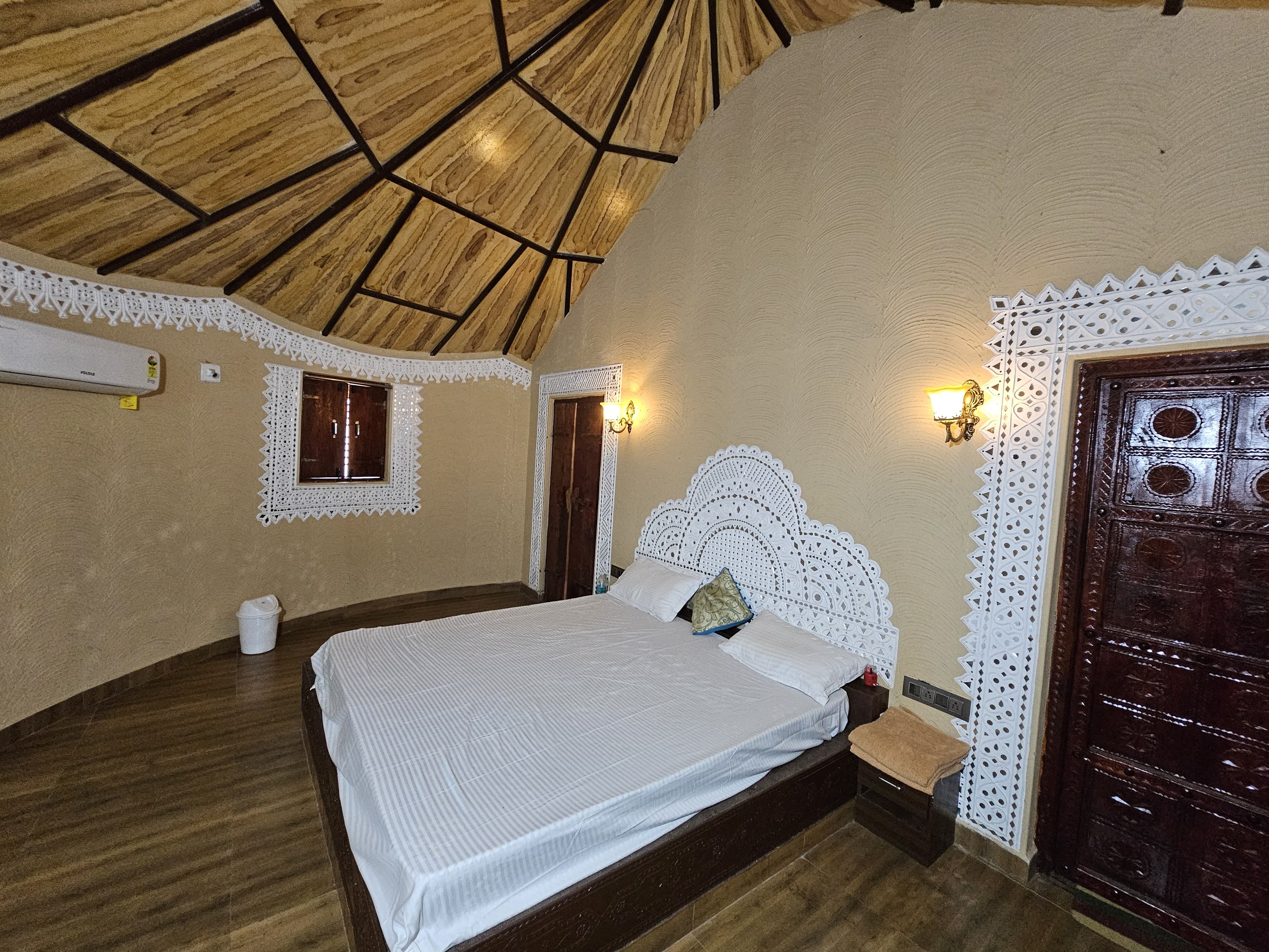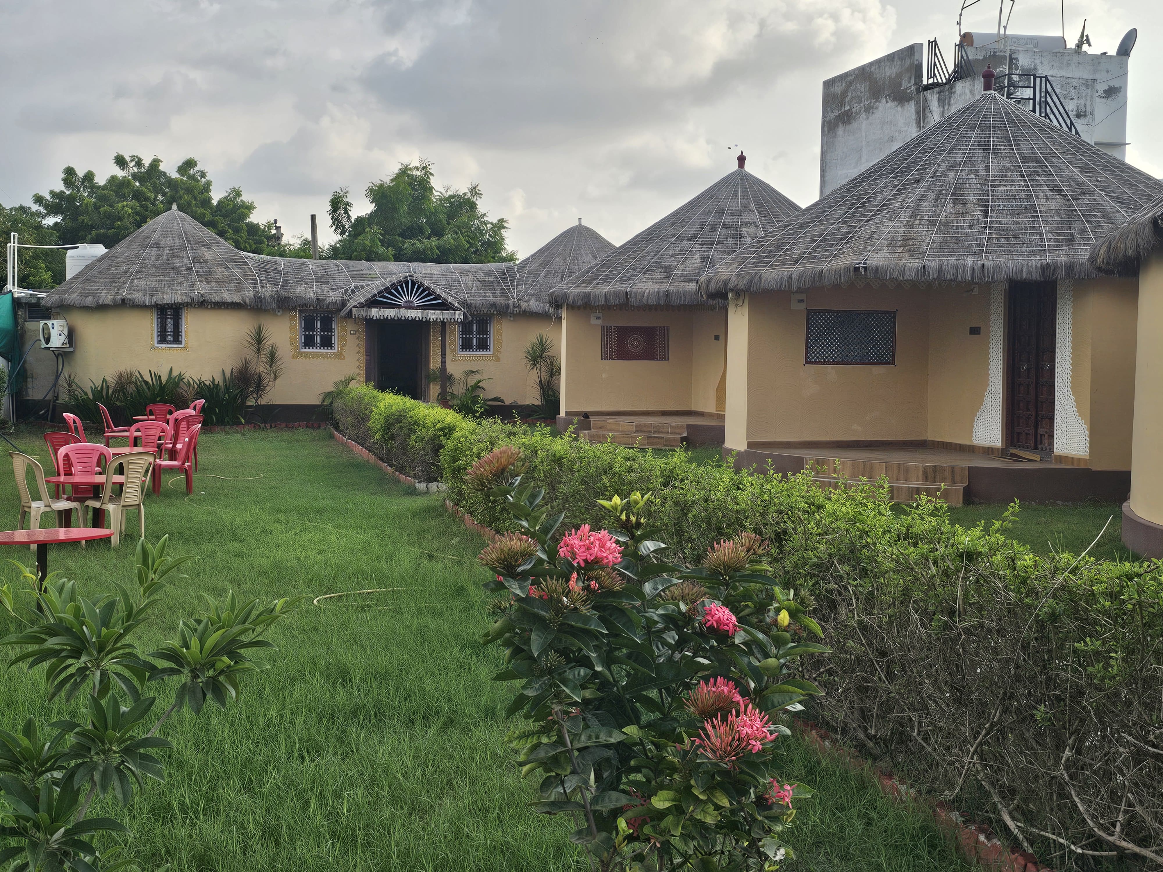 Located near Airport Ring Road and Vatsalya School, The Kutch House offers a peaceful and cultural stay experience in Bhuj, featuring beautiful Bhunga-style rooms that perfectly capture the heritage of Kutch.